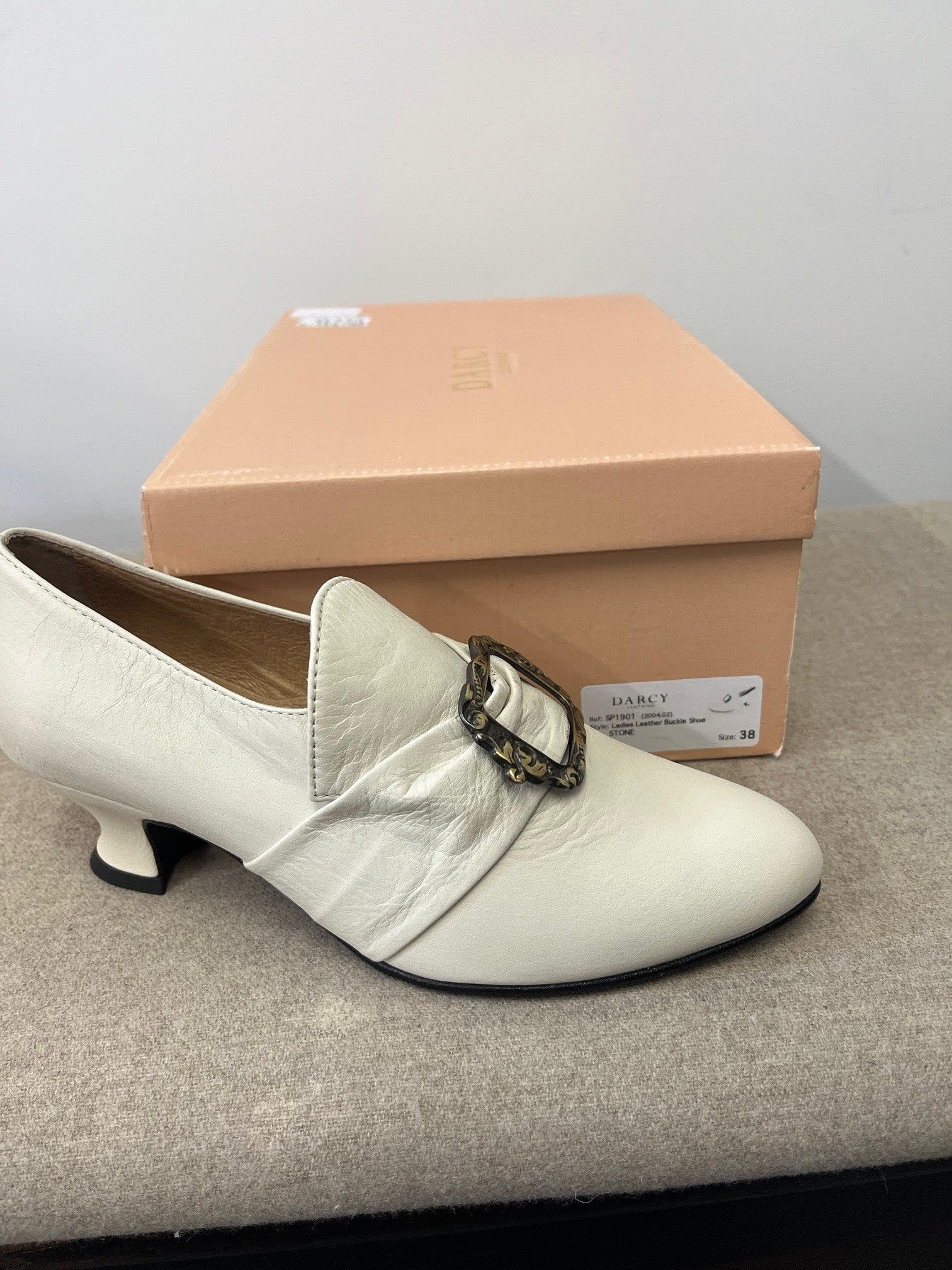 The 2in high heel has been specially carved to a proper period shape usually known as a Louis heel.