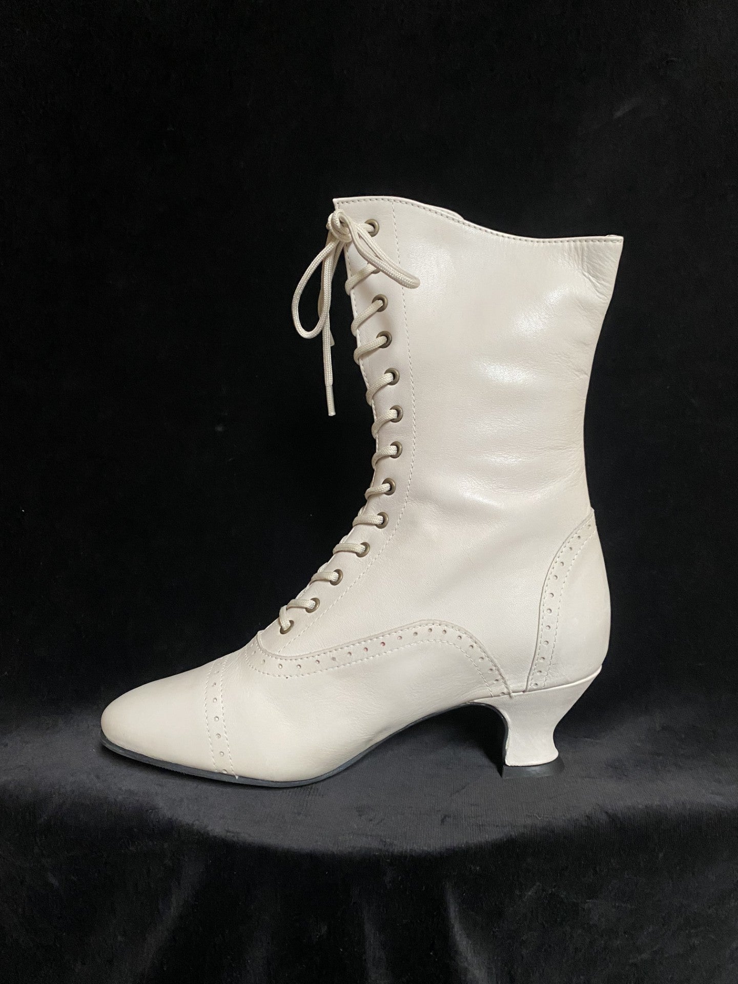 Reduced Ladies Victorian Lace Up Stone Coloured Leather Boots (SP1911-F-1) size 39