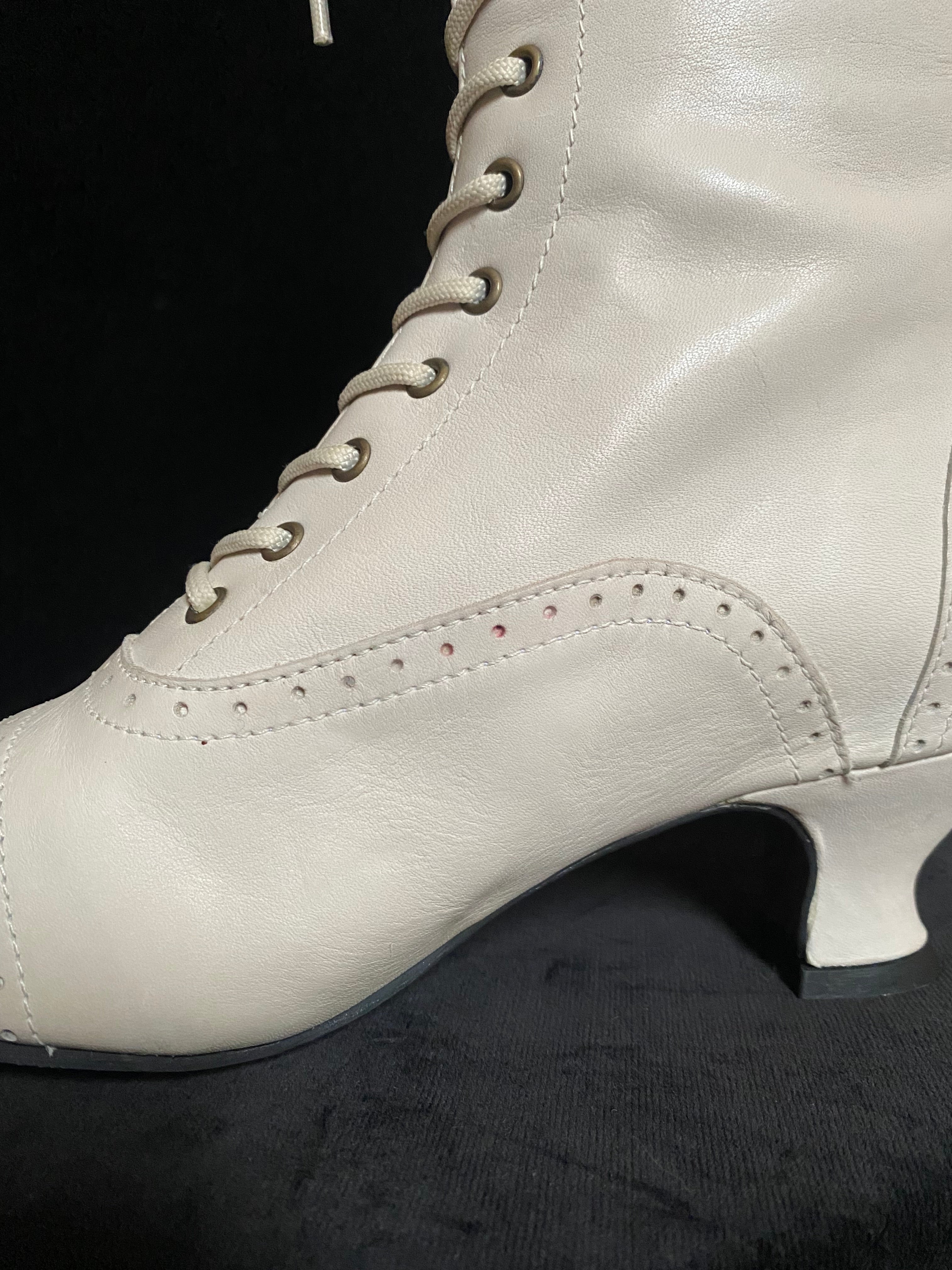 The 2in high heel has been specially carved to a proper period shape usually known as a Louis heel.